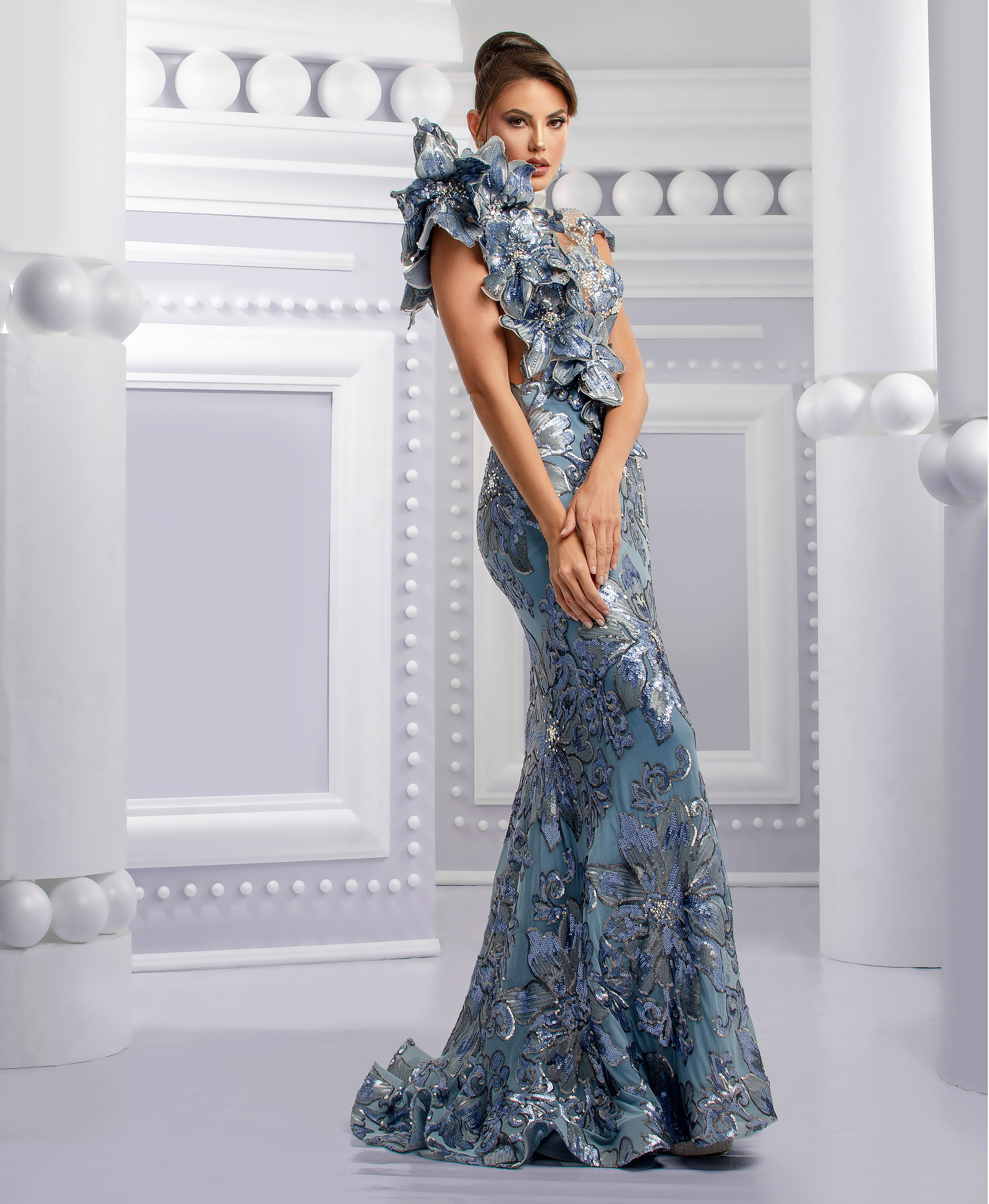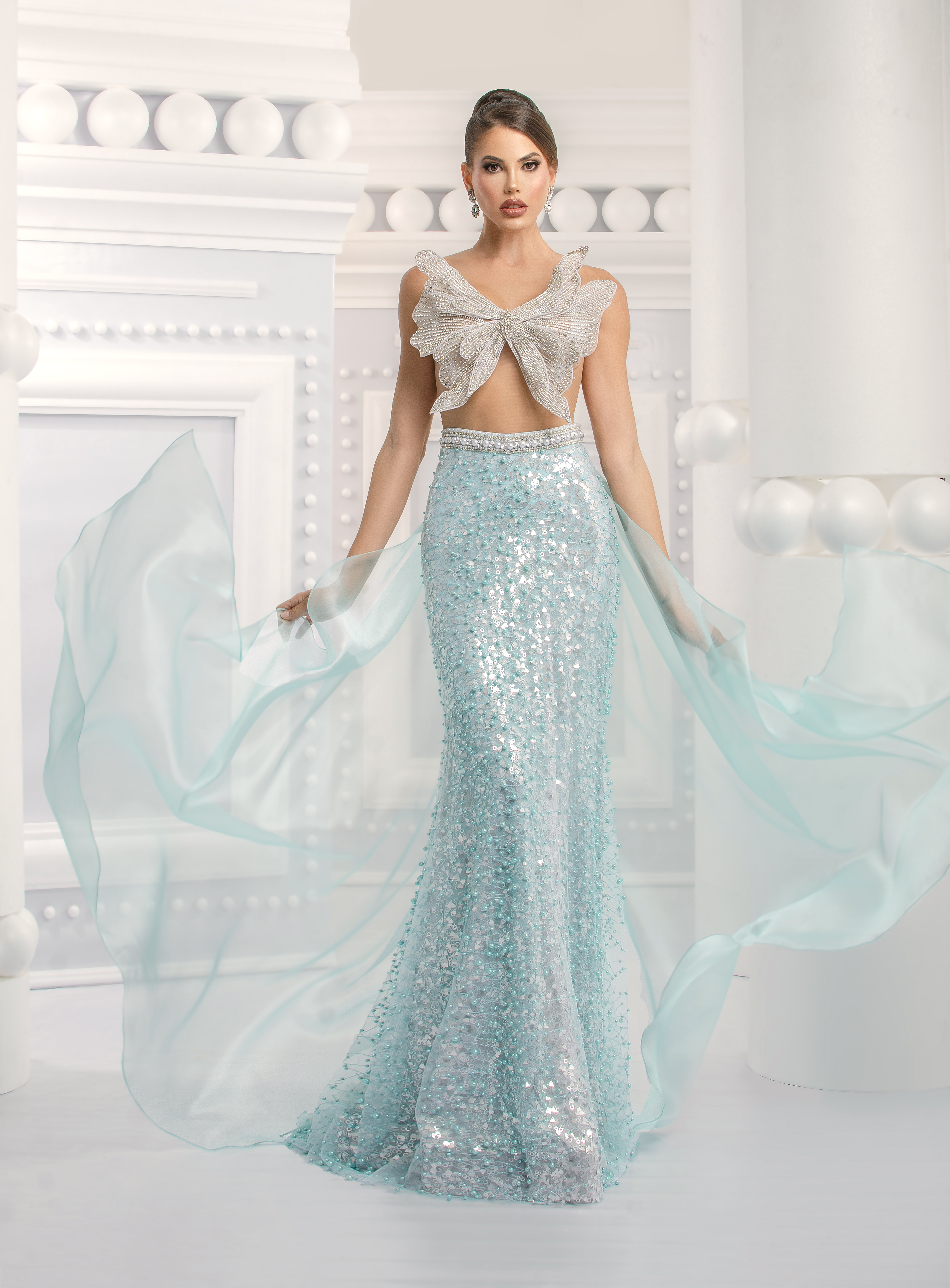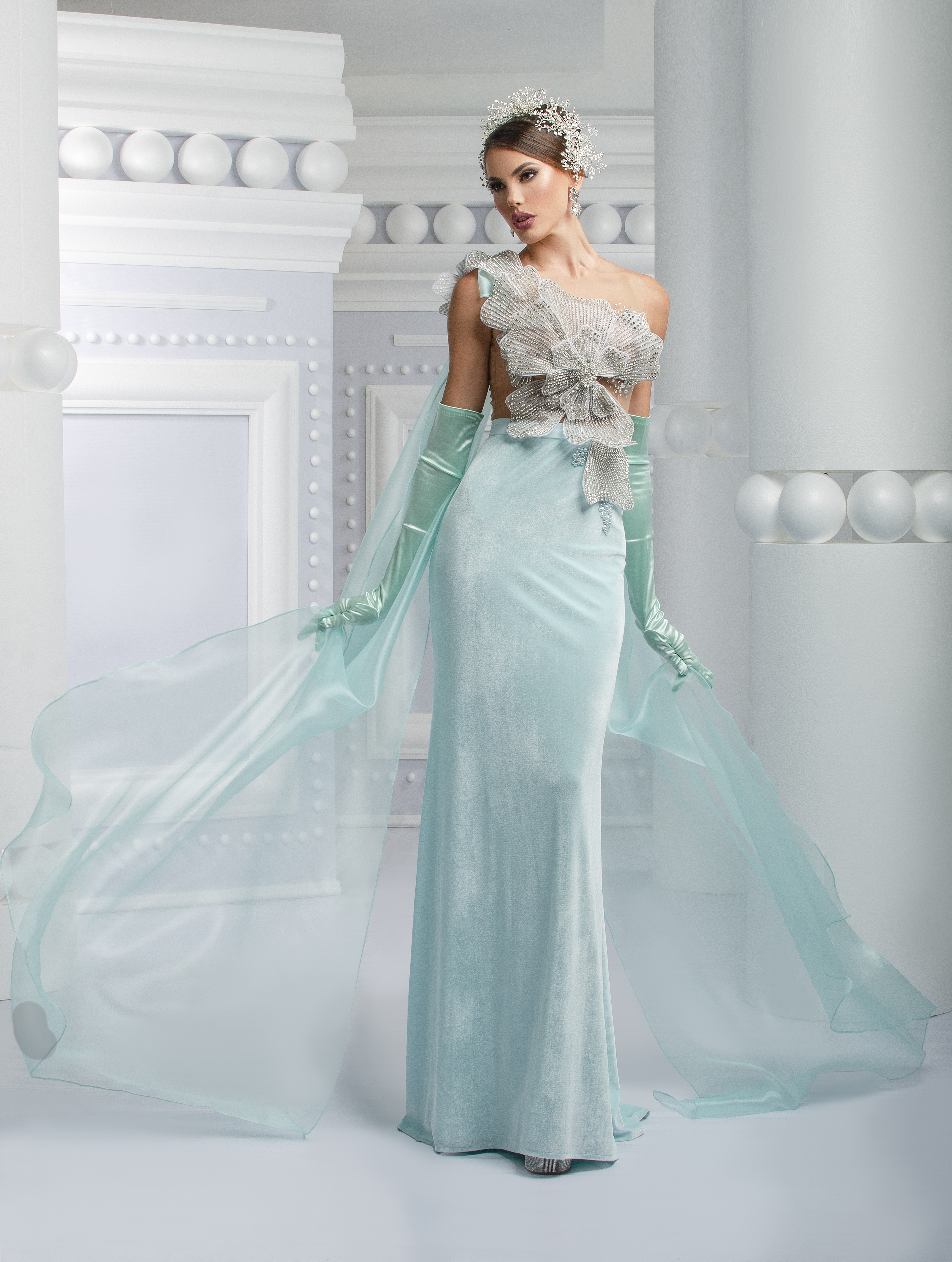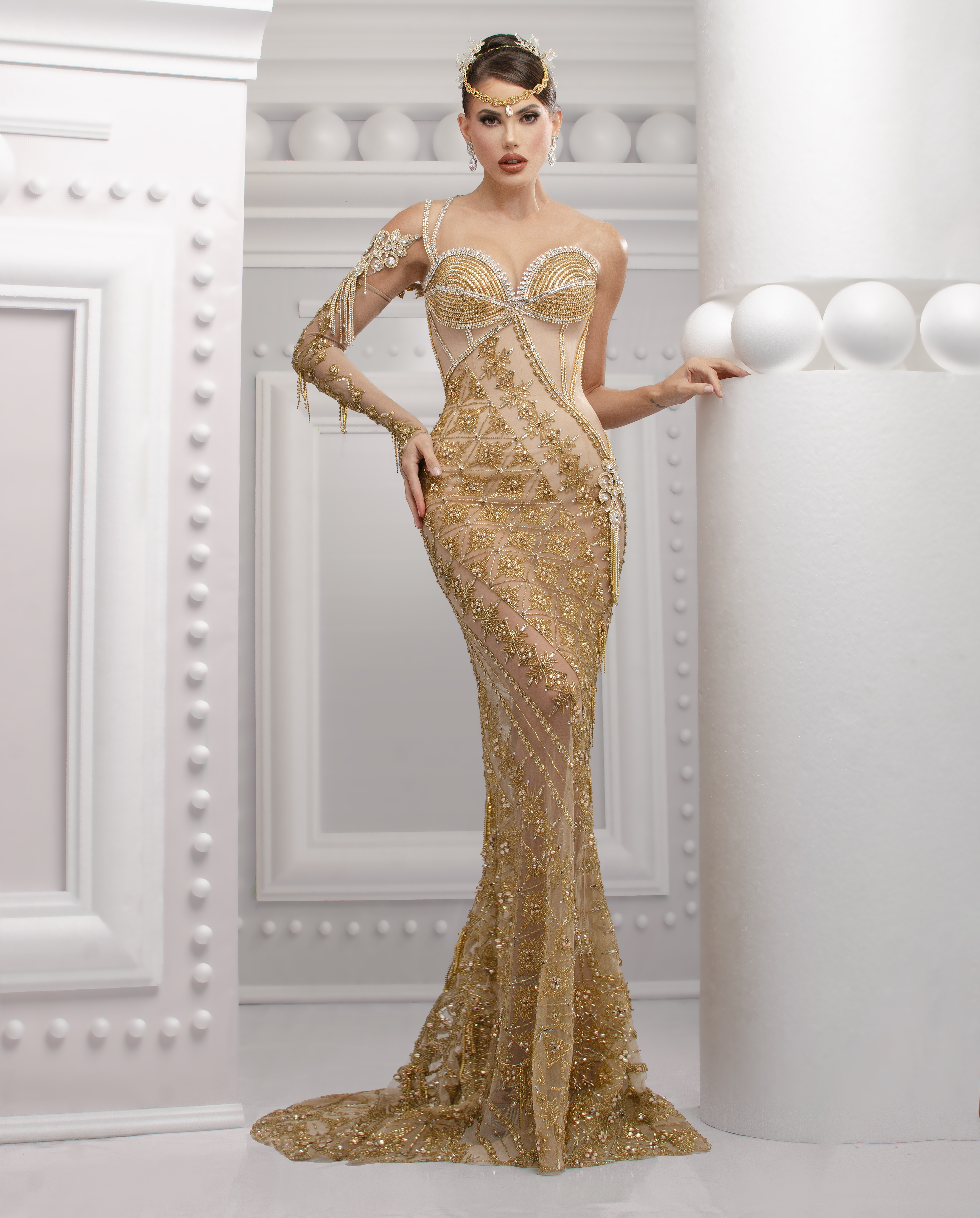 Con la bella Modelo Anyela galante engalanada muy a lo Nidal designer en nuestra nueva coleccion