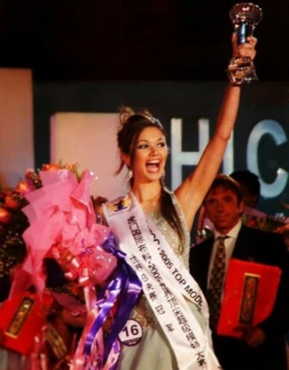 Dominika Van Santen Alix de Isla de Margarita se corona como Top Model of the World 2005 vestida en un Nidal Nouaheid